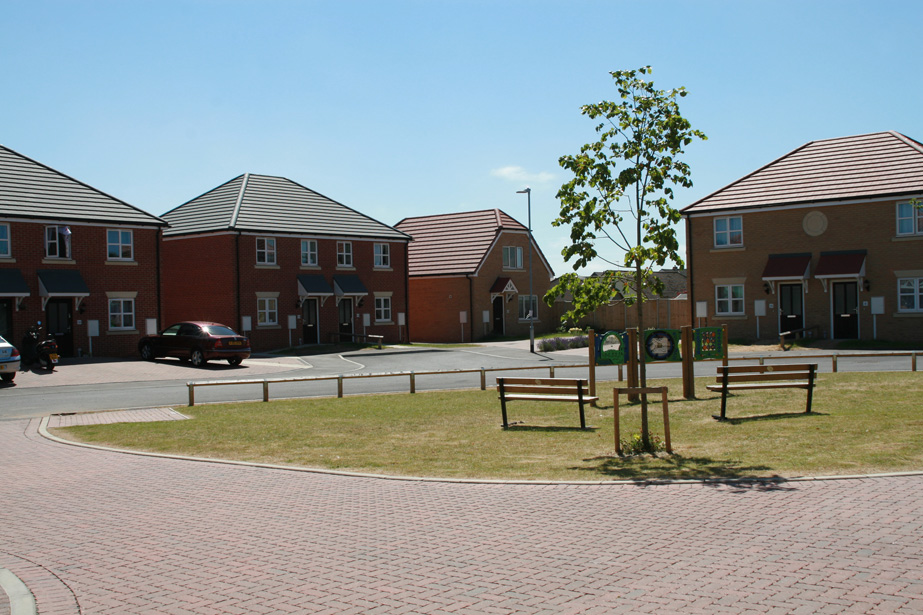 The layout comprises of a mix of house types - 7 three bedroom houses, 14 two bedroom houses and 5 one bedroom apartments with under croft parking facilities below.